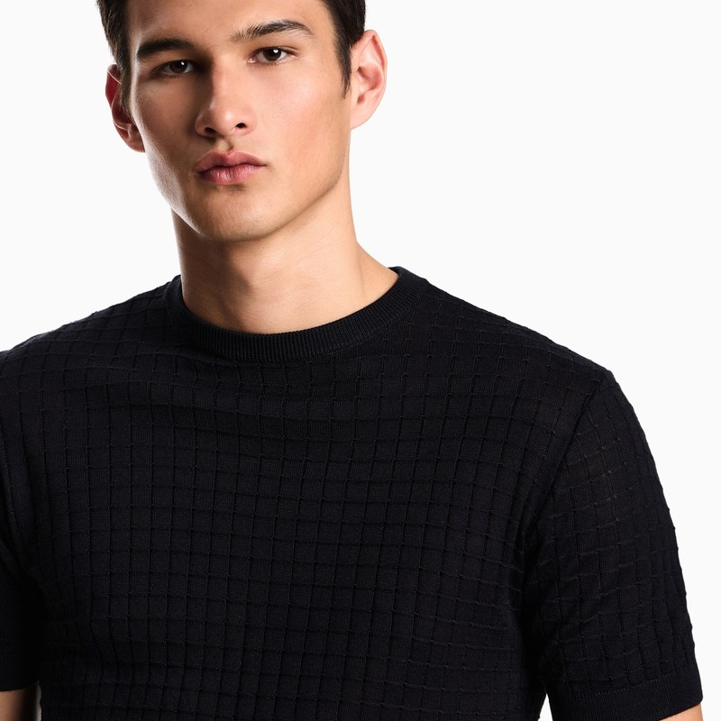 阿玛尼男士圆领短袖提花针织衫