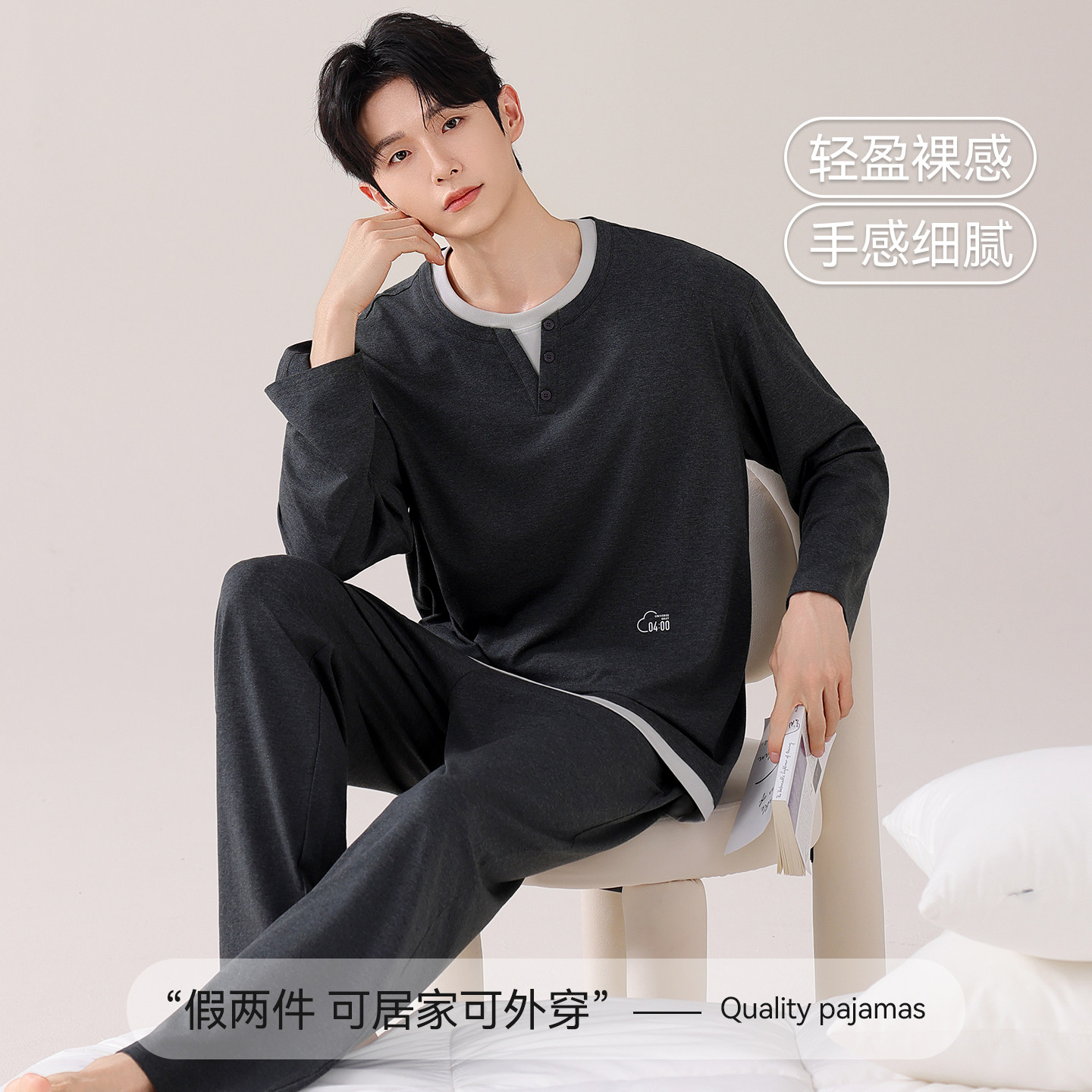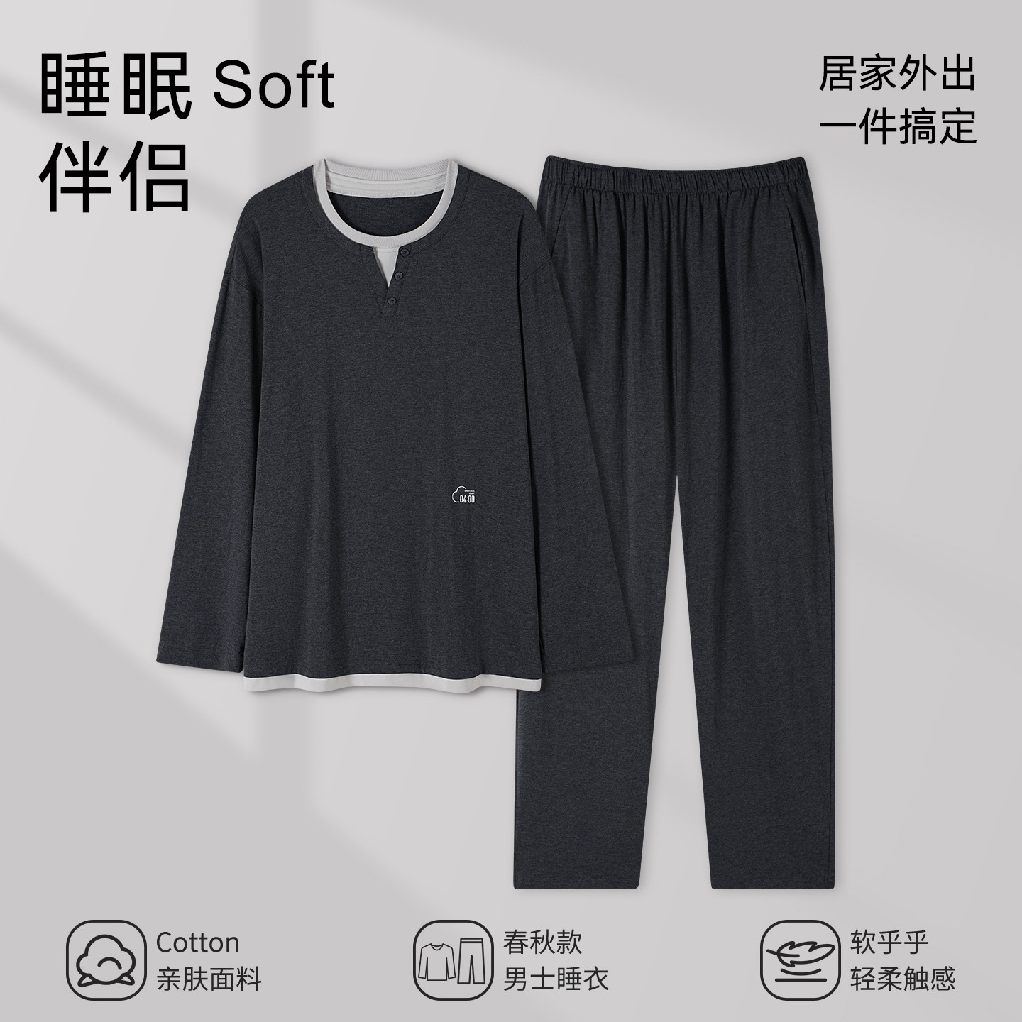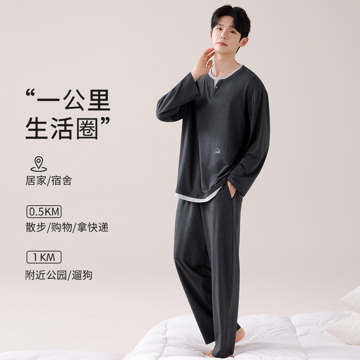 芬腾可安睡衣男款男士秋季2026新款长袖大码深灰家居服套装秋冬天