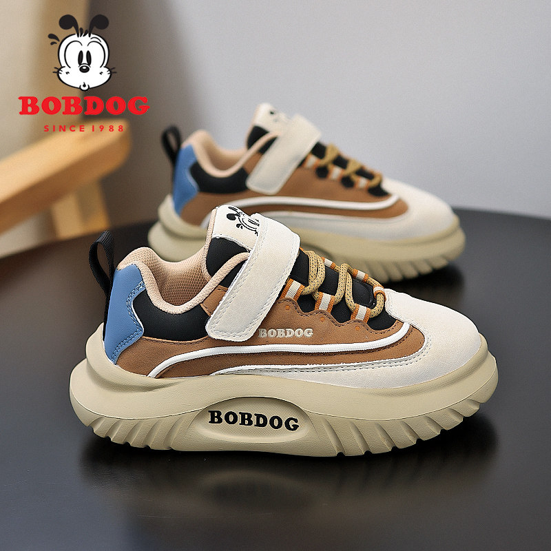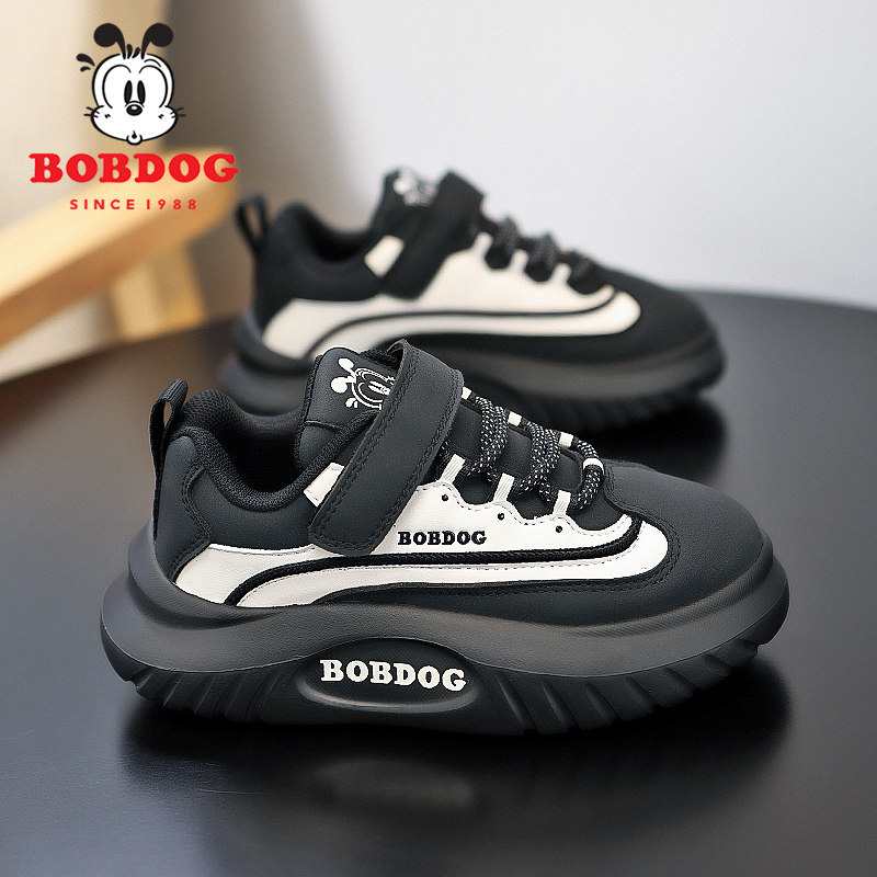 巴布豆男童鞋秋冬2025新款皮面防水小男孩板鞋防滑软底儿童运动鞋