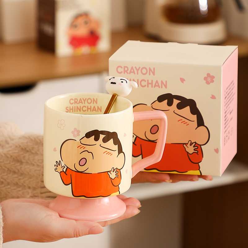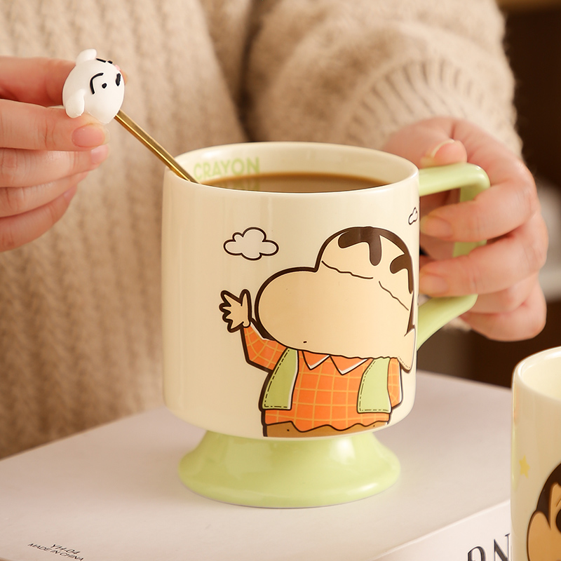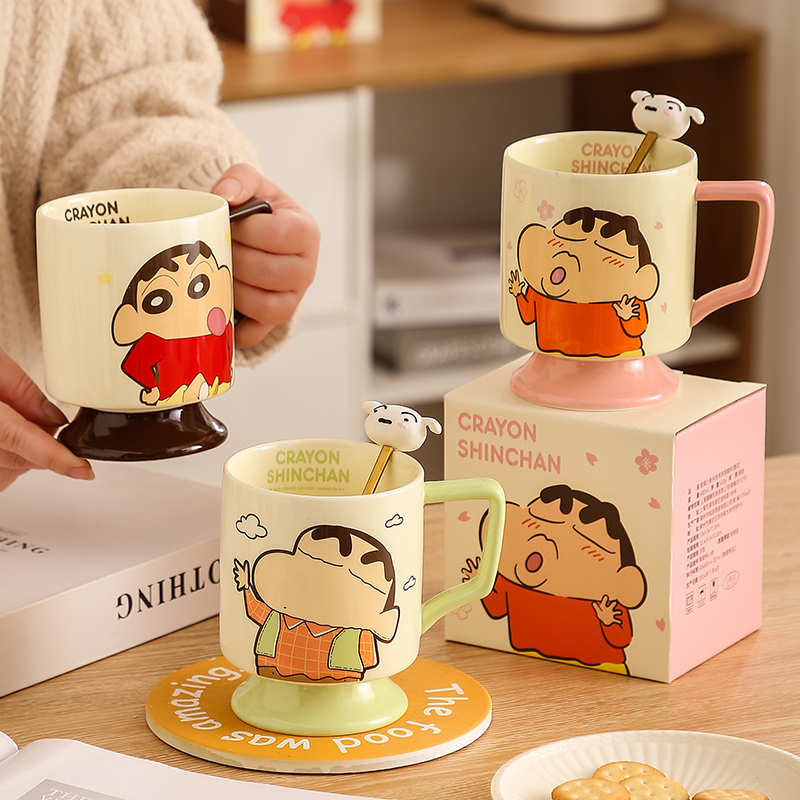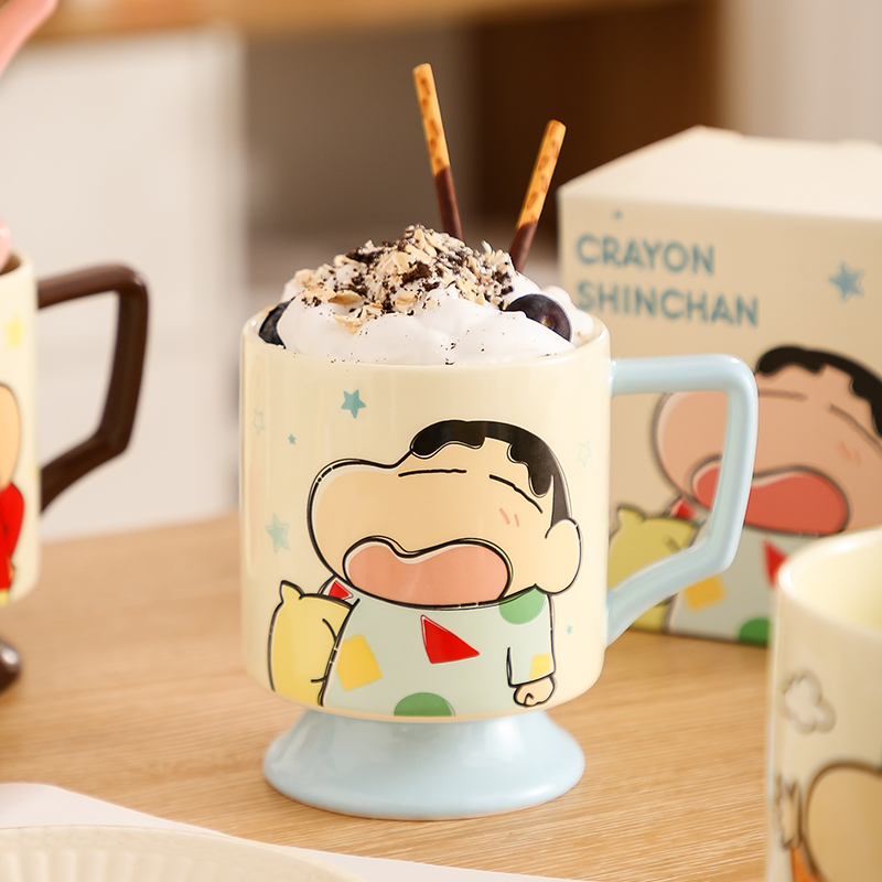 蜡笔小新高脚杯子可爱陶瓷喝水杯女生日礼物早餐咖啡杯创意马克杯