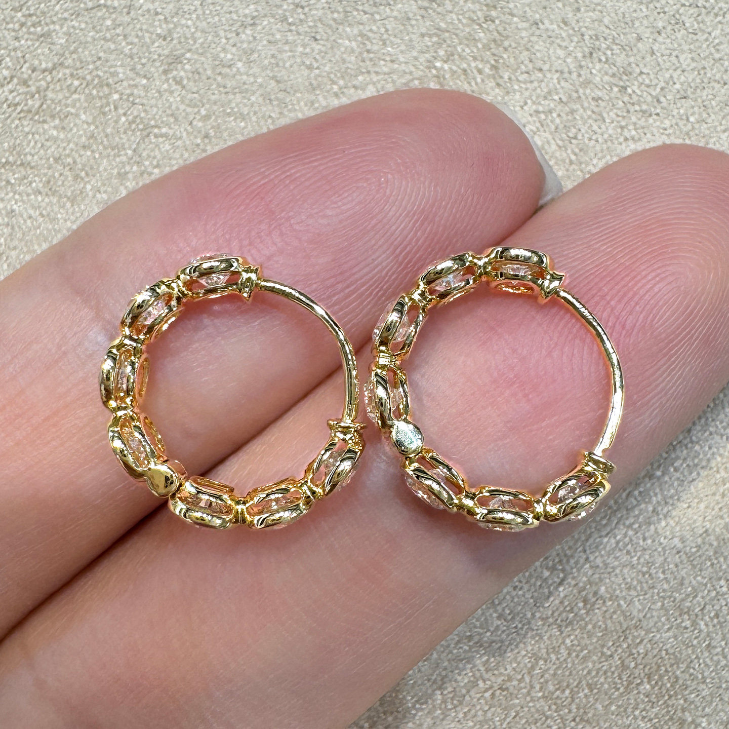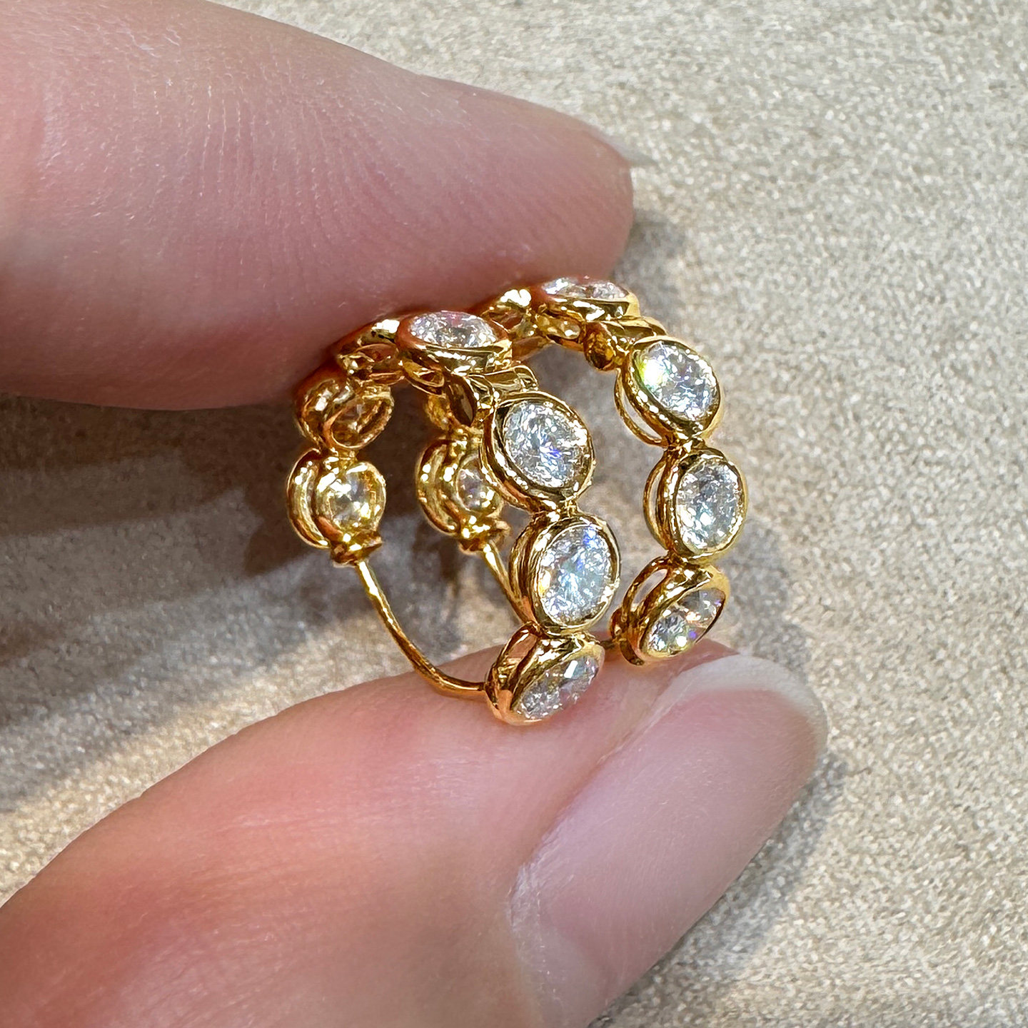 泡泡耳环 18k金耳圈培育钻耳饰彩金18k金耳扣满钻排钻18k金耳环