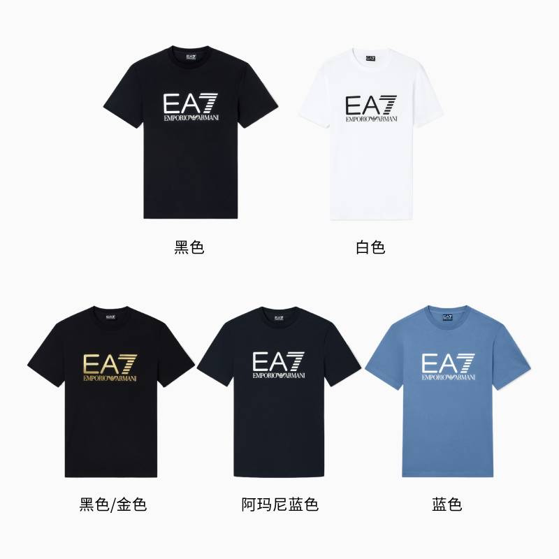 EA7/阿玛尼男士纯棉圆领短袖T恤