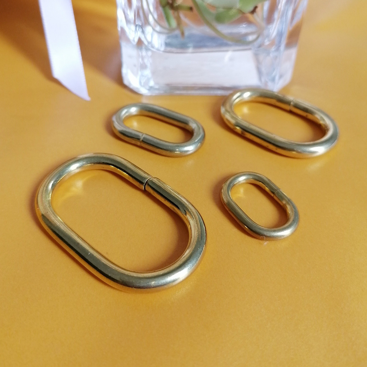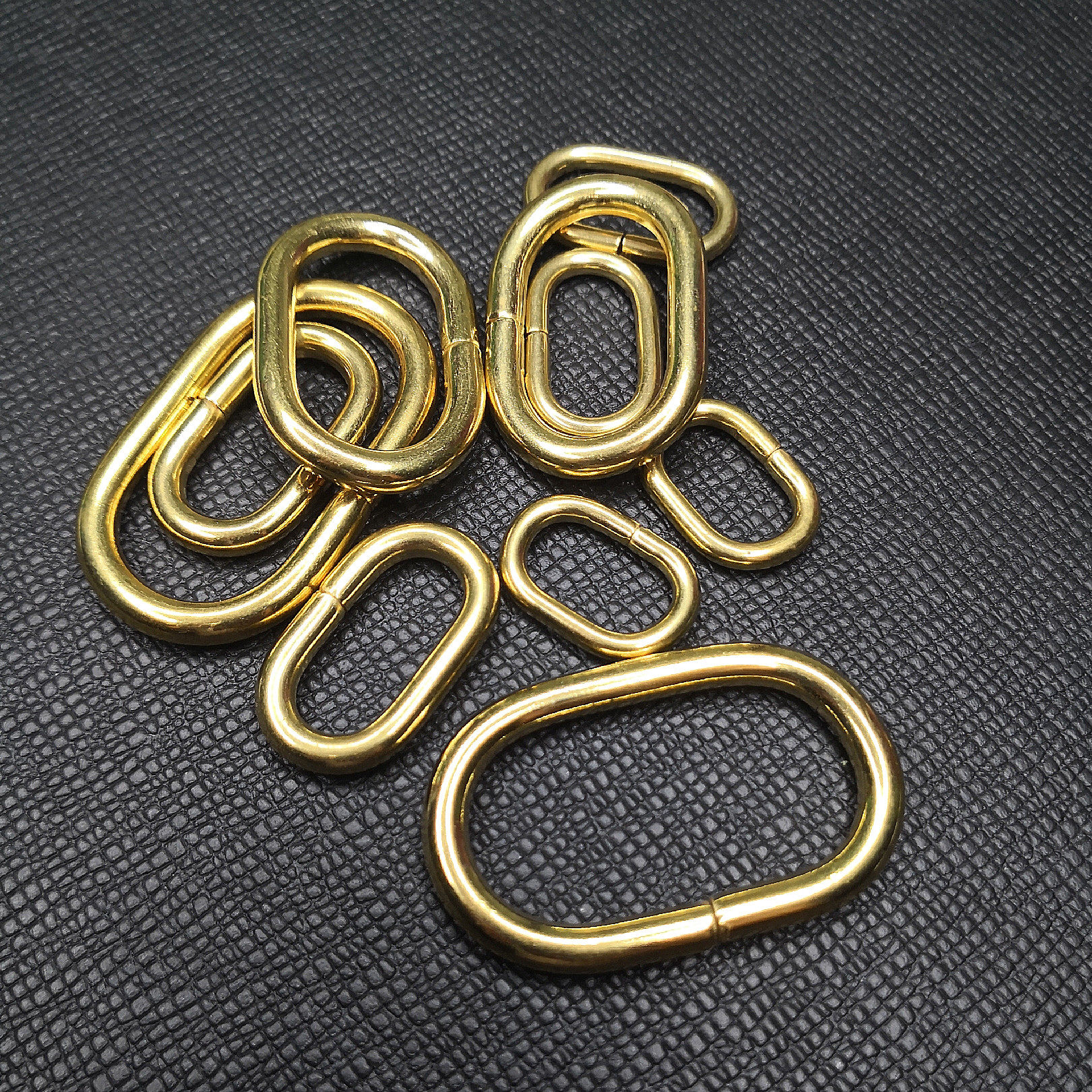 纯黄铜开口蛋扣 手工皮具配件DIY背带纯铜椭圆扣口字扣长方椭圆环