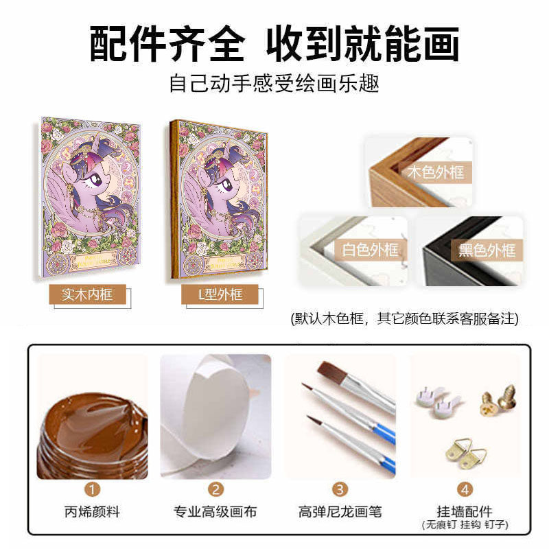 小马宝利数字油画diy填充2025新款手工填色治愈系卡通油彩画卧室