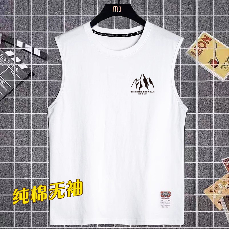 200g新疆棉无袖男夏季新款圆领健身背心跑步打球砍袖宽松运动 T恤