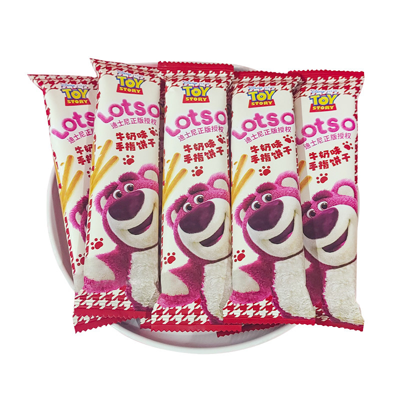 迪士尼草莓熊牛奶味手指棒棒饼干儿童分享休闲零食结婚伴手礼糖果