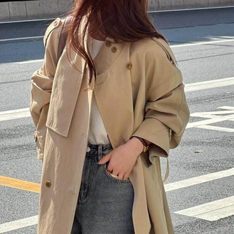 法国MK&DK 白色风衣外套女2024新款中长款小个子春秋季英伦风大衣