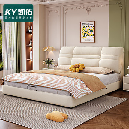 凯佑2025新款奶油风雪尼尔绒布婚床轻奢简约网红主卧室双人布艺床