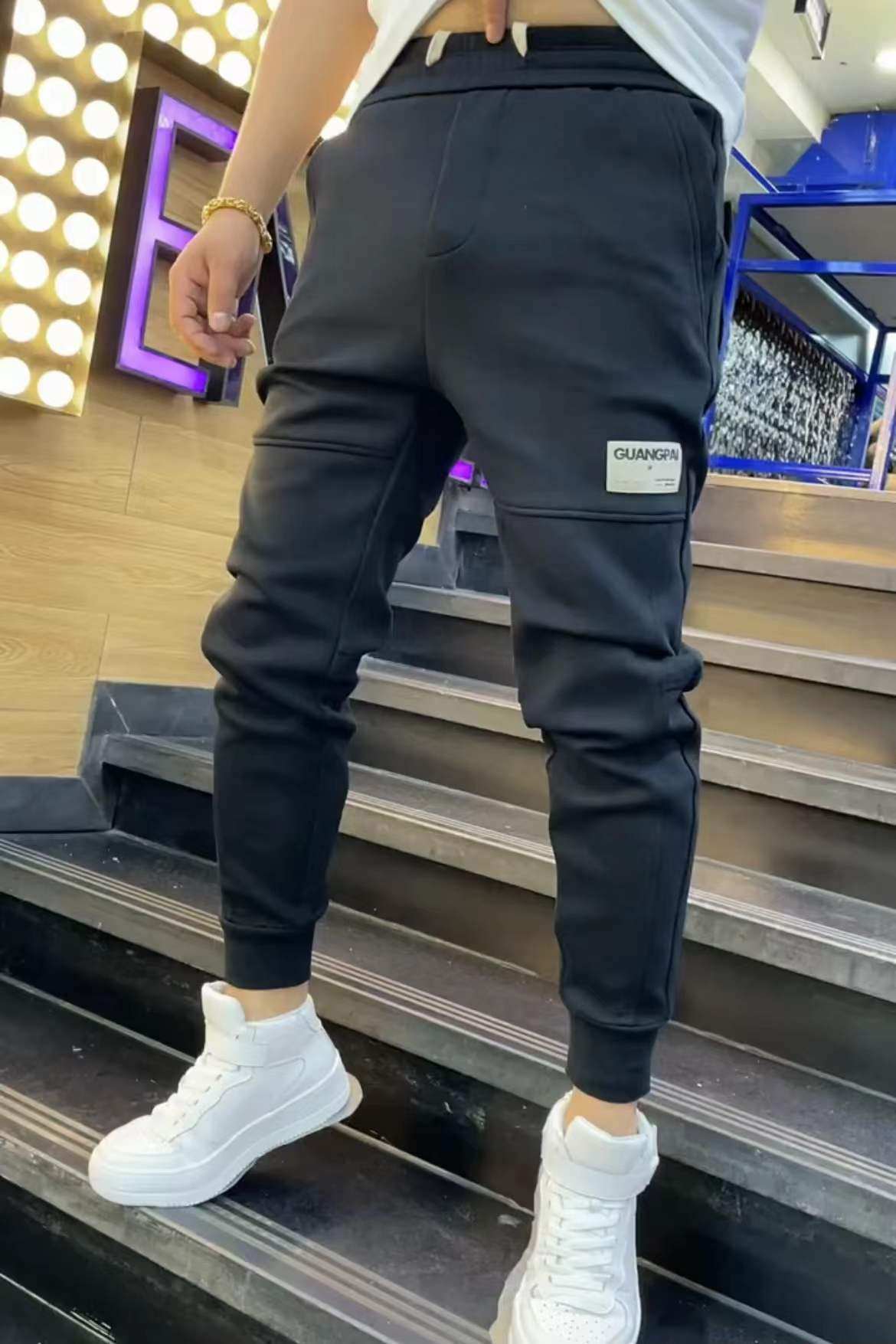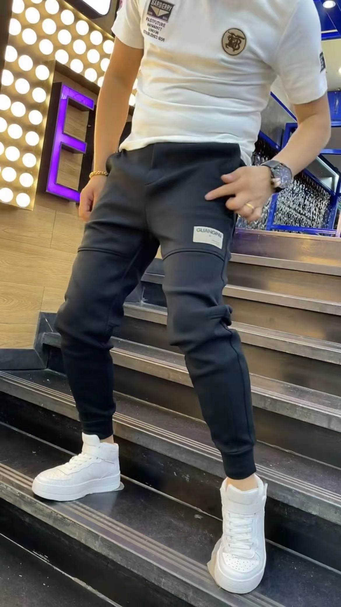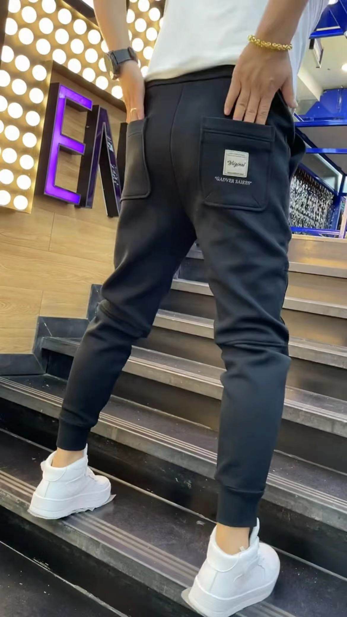 2188男士休闲裤春季新款加绒保暖卫裤潮流时尚长裤小脚运动裤男裤