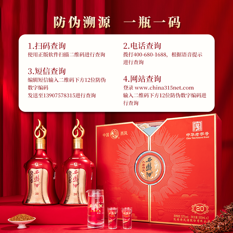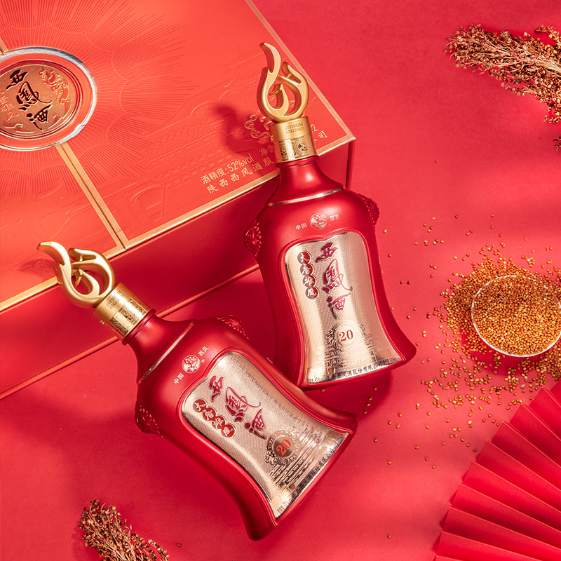 西凤酒52度20年品鉴凤香型纯粮食酒白酒礼盒装高档送礼500mLx2瓶