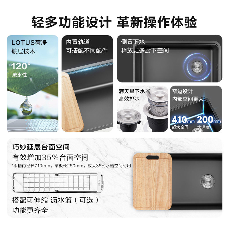 摩恩水槽大单槽304不锈钢洗菜盆厨房一体式台下盆洗碗槽42633
