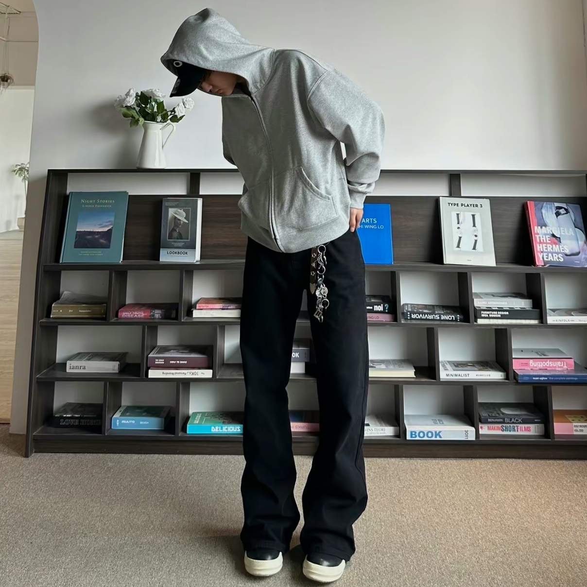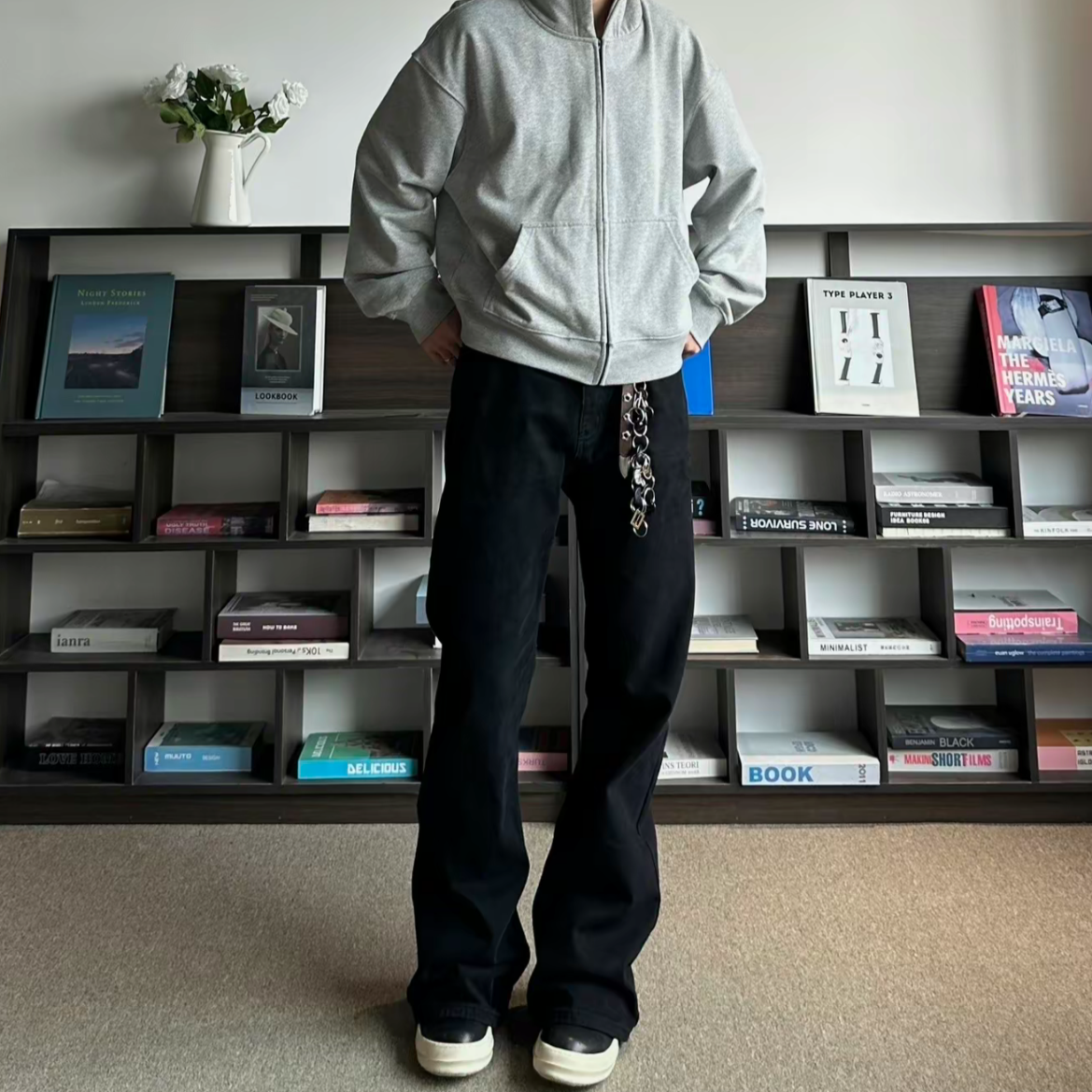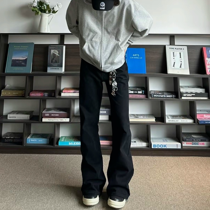 Bootcut23黑色宽松微喇牛仔裤男