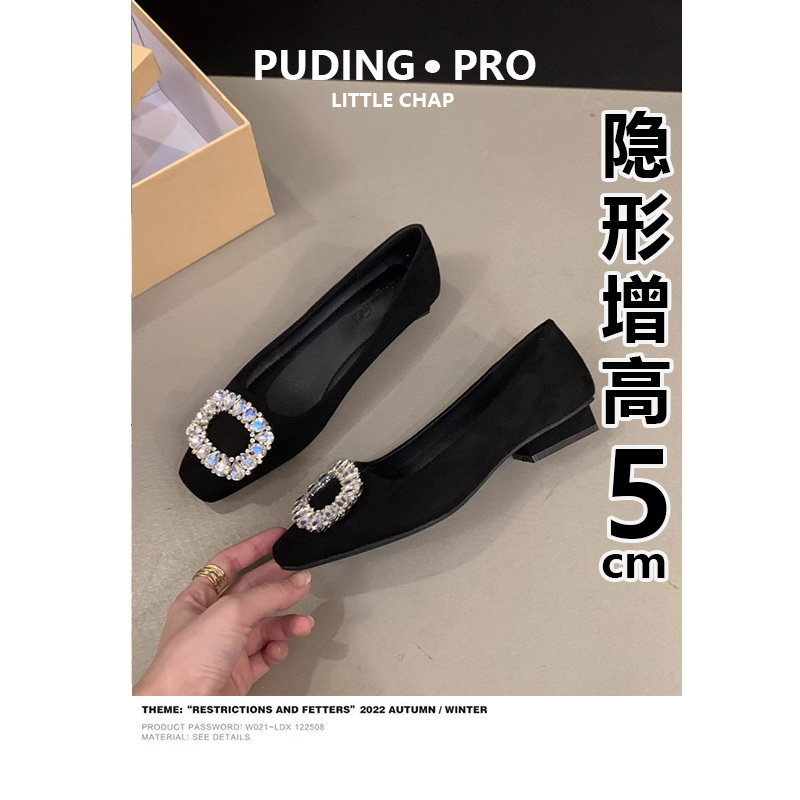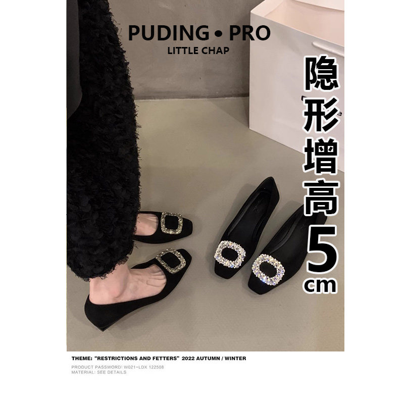 RV方扣内增高单鞋女2025春秋季新款粗跟高跟鞋小个子芭蕾舞豆豆鞋