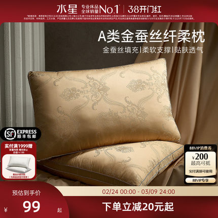 水星家纺金桑蚕丝枕莱赛尔提花枕头单双人高端枕芯床品26年新款