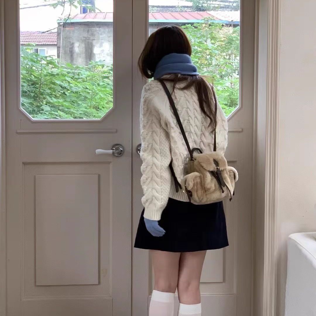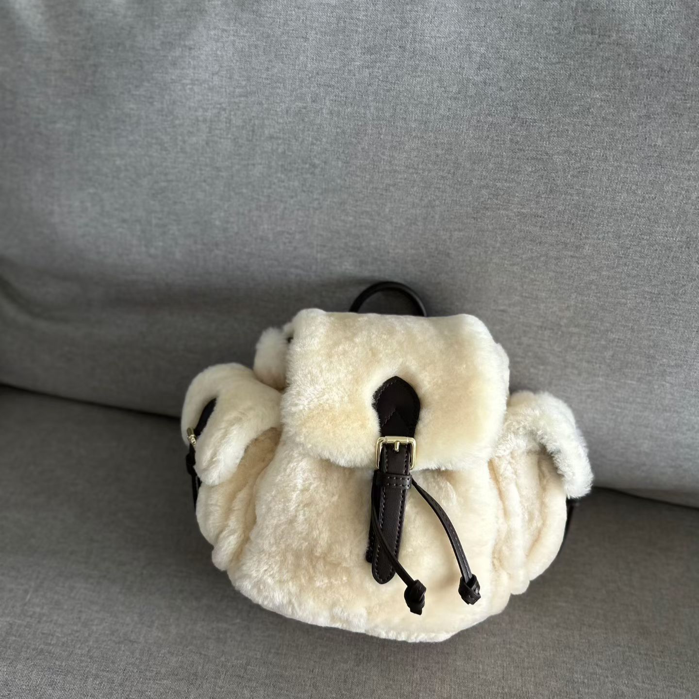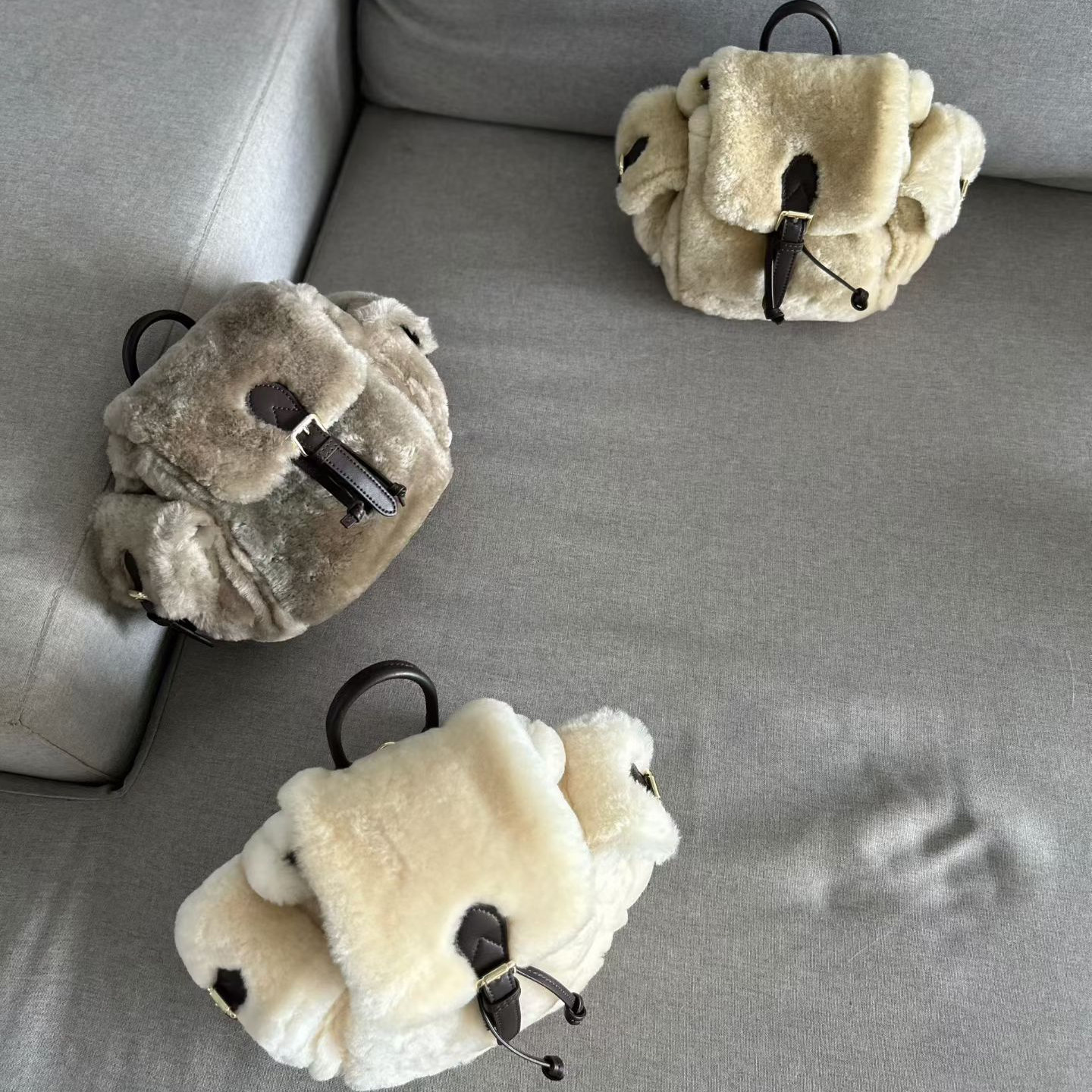 秋冬新款真山羊毛双肩包可爱迷你毛绒背包日常百搭多口袋小书包女