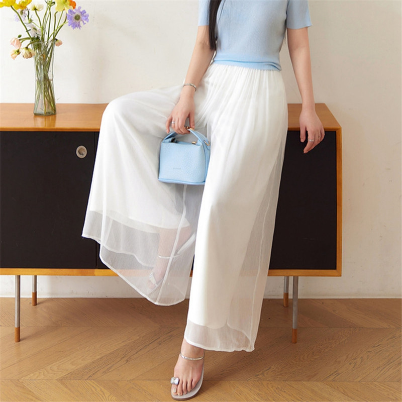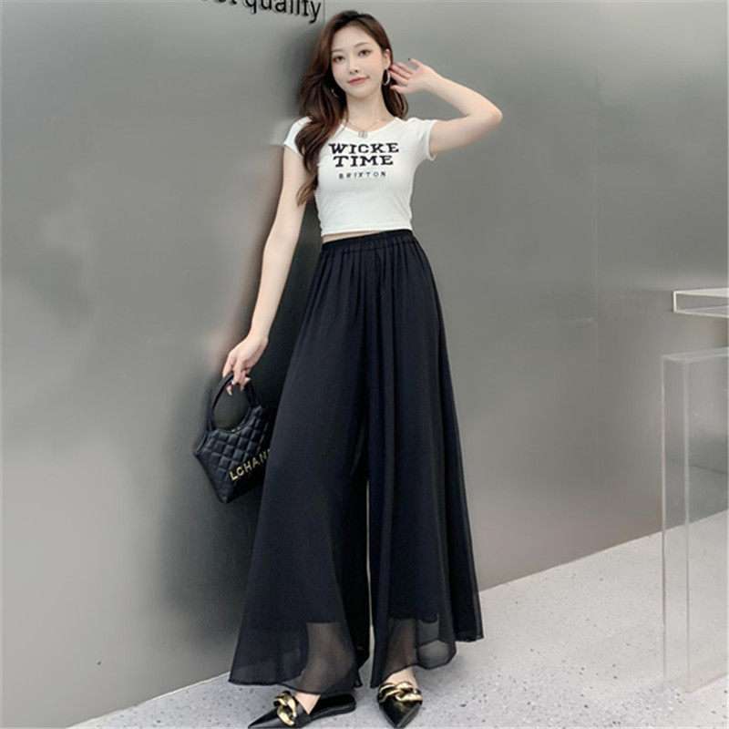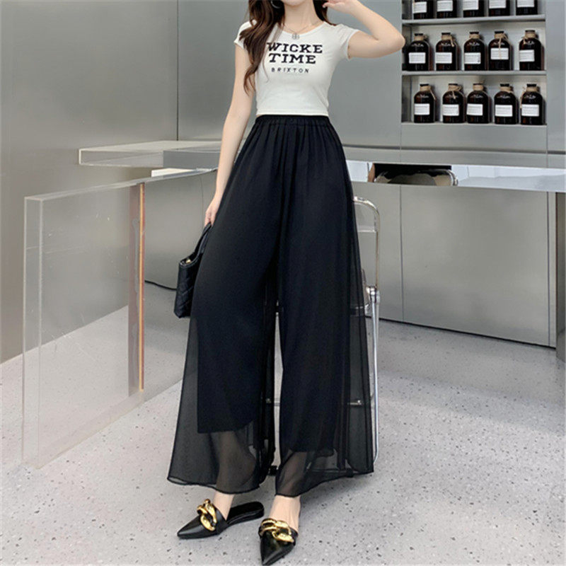 雪纺阔腿裤夏新款薄款大摆仙女甩裤裙子垂感禅意高腰九分休闲长裤