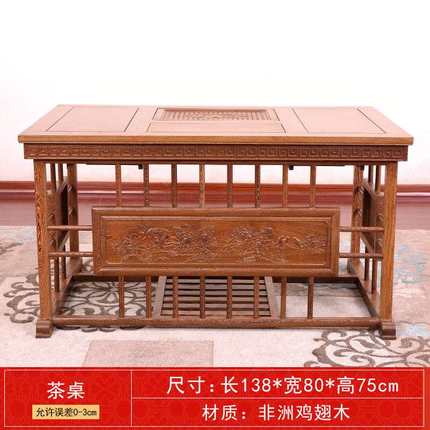三韵红木家具非洲鸡翅木(学名:非洲崖豆木)茶桌椅组合实木仿古