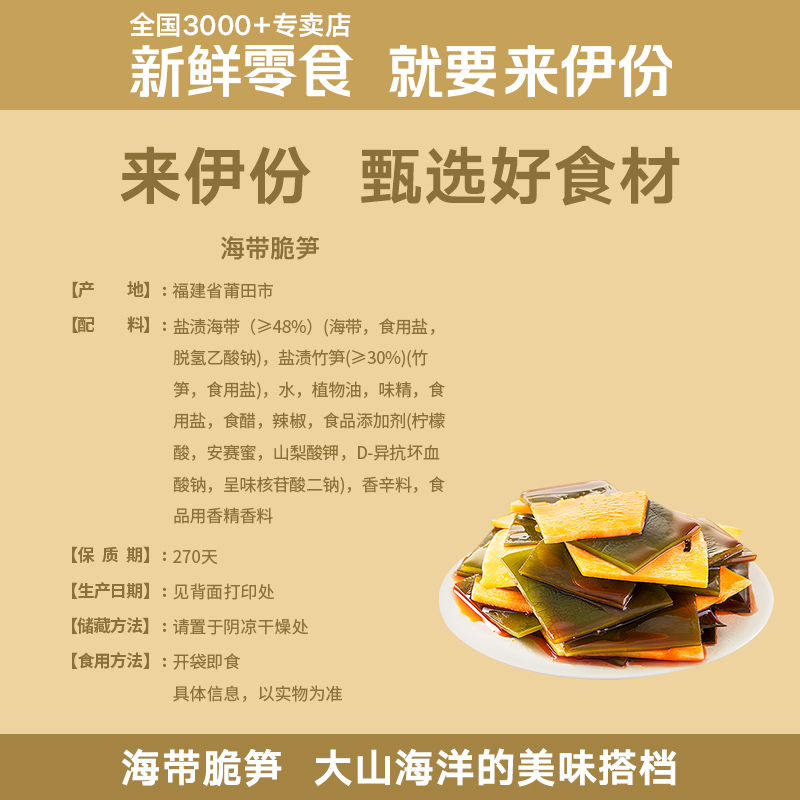 来伊份海带脆笋160g*2香辣即食竹笋嫩脆笋下饭菜休闲海味海鲜零食