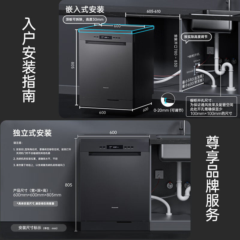松下1ZN嵌入式洗碗机家用全自动大容量13+2套消毒除菌烘干独立式