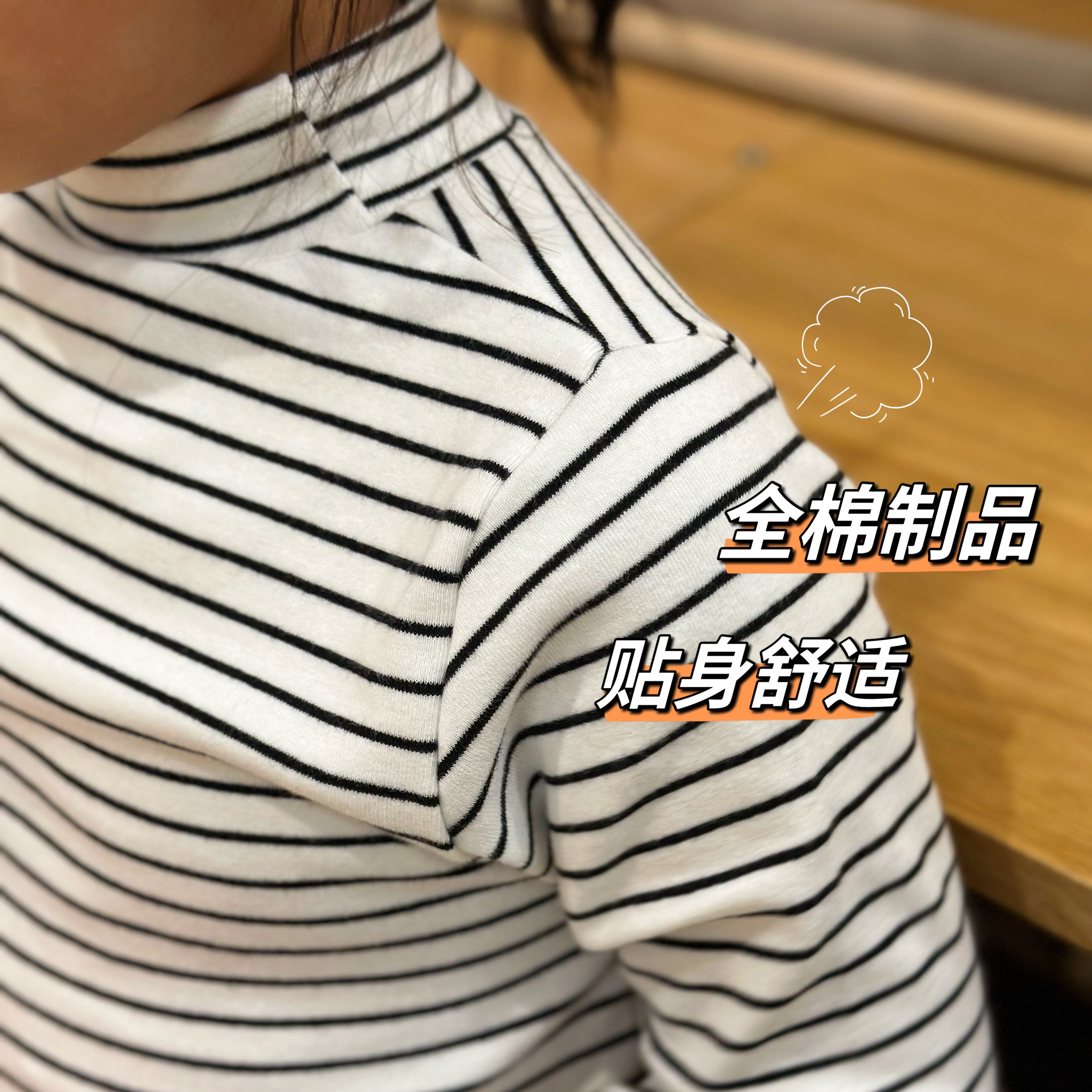 秋冬加厚纯棉打底衫男童装弹力中领长袖t恤保暖儿童宝宝女童条纹
