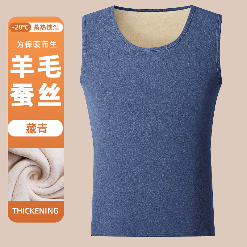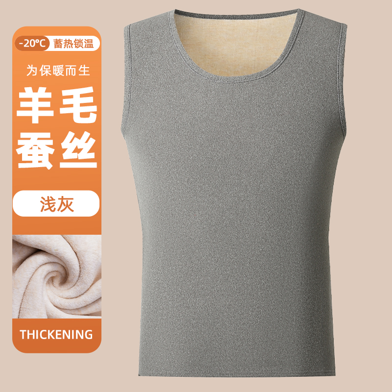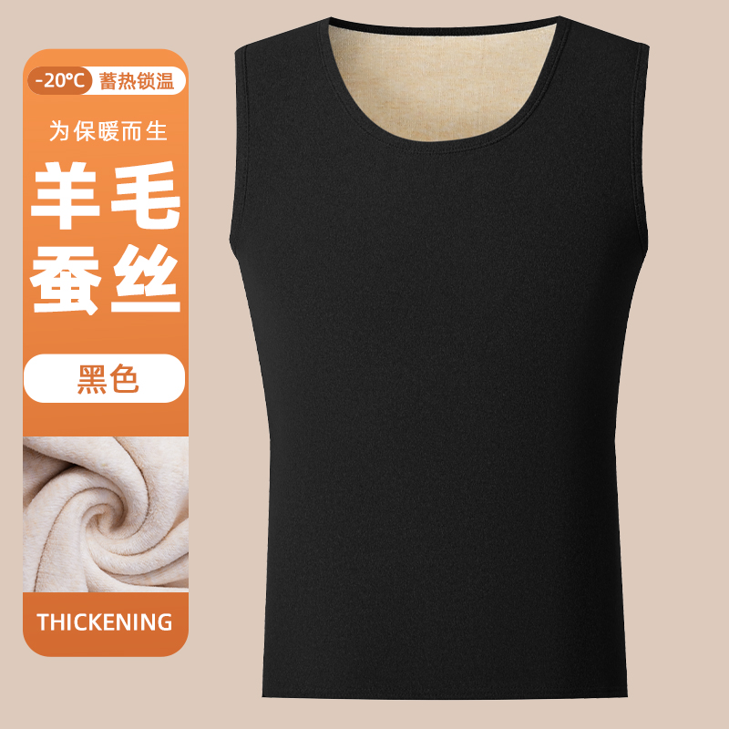男士保暖德绒背心羊绒蚕丝马甲加绒打底无痕背心上衣无袖坎肩内衣