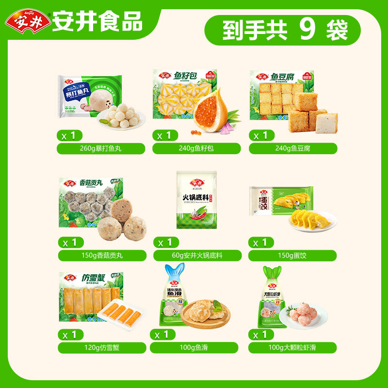 【9袋】安井香菇贡丸鱼豆腐鱼籽包鱼丸虾滑蟹肉棒火锅丸子食材