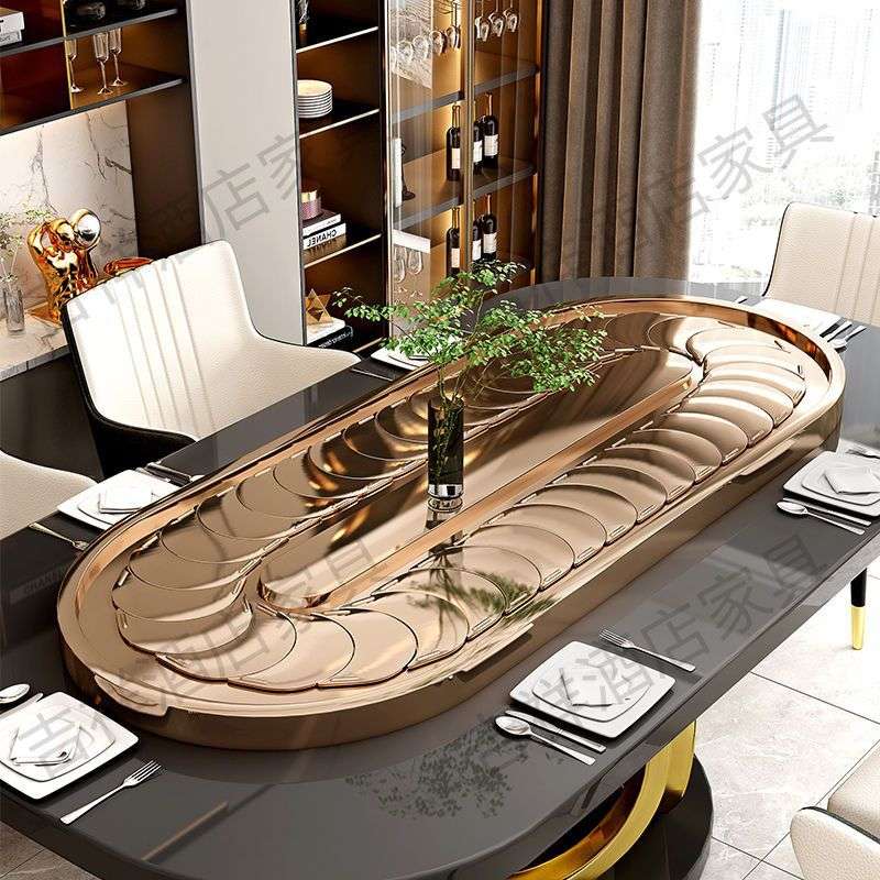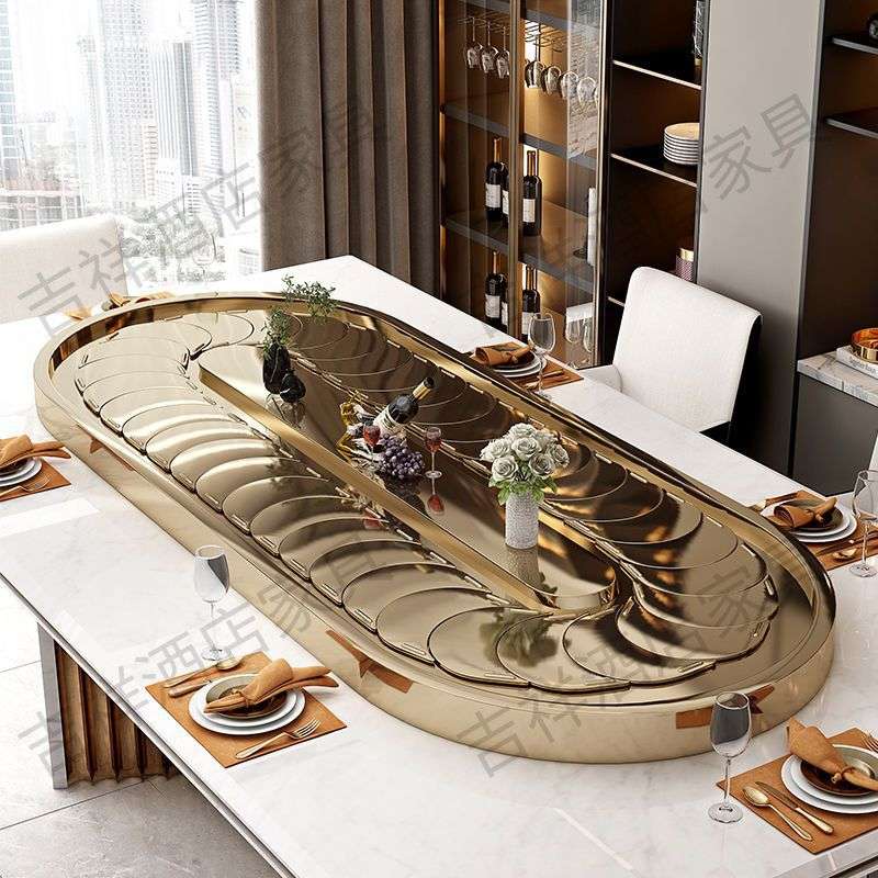 长方形椭圆传送带不锈钢餐桌电动转盘 旋转小火锅传送设备展示台