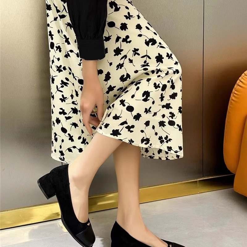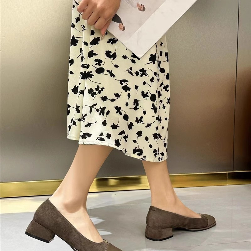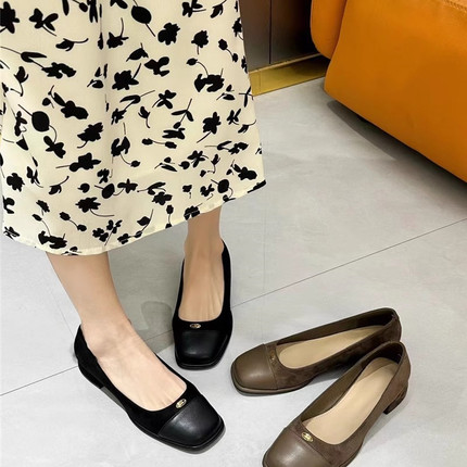 品牌撤柜法式中跟浅口单鞋女2025春秋新款方头粗跟百搭通勤工作鞋