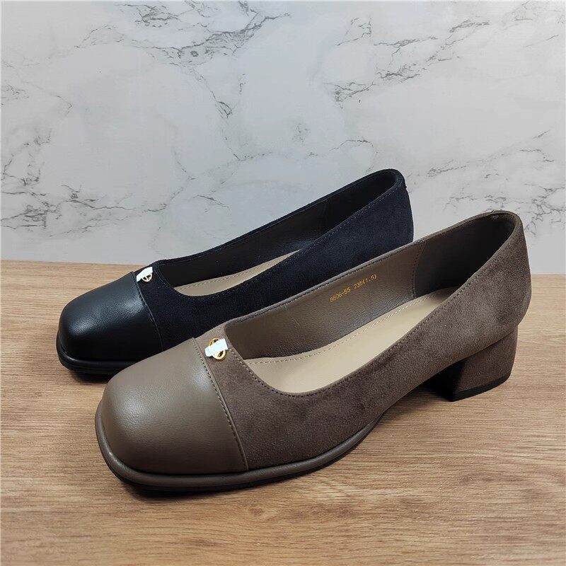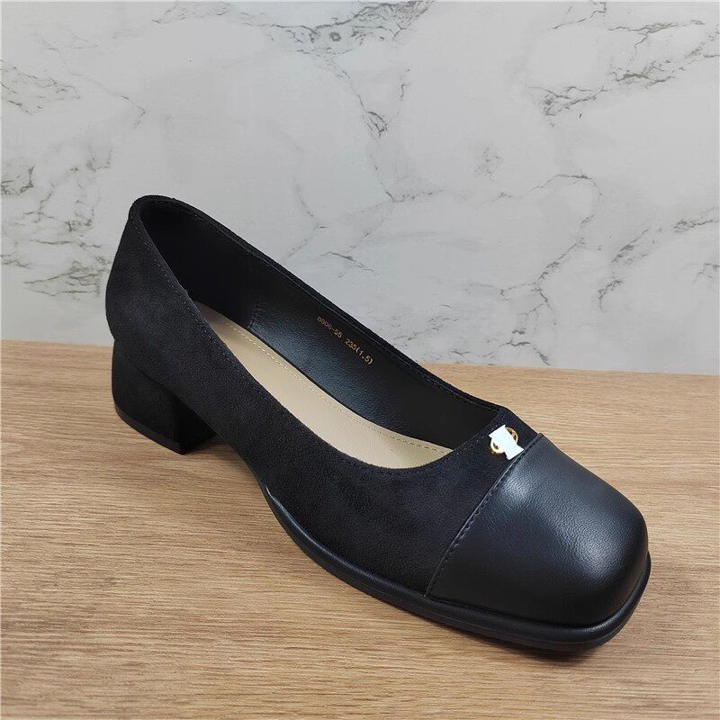 品牌撤柜方头浅口粗跟通勤单鞋女
