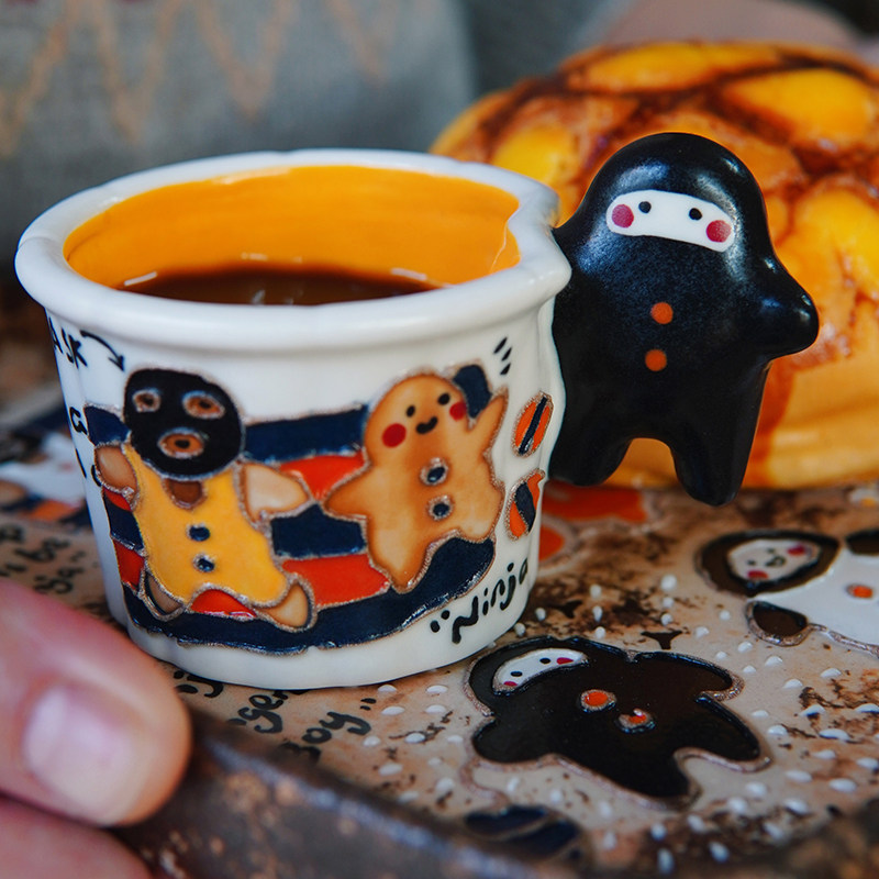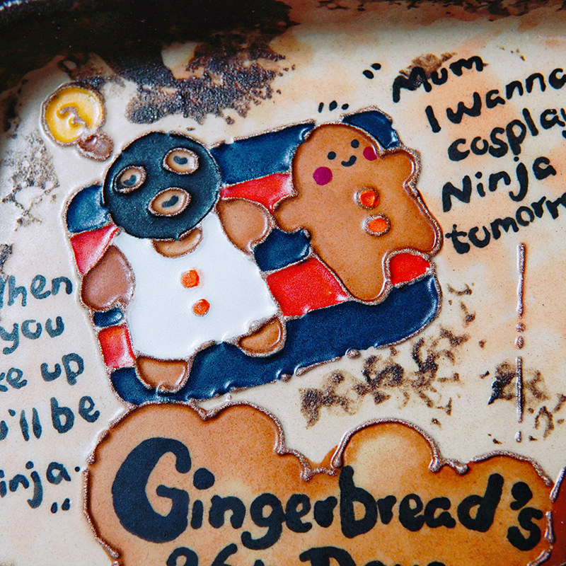 姜饼人卡通动漫手绘陶瓷马克杯创意可爱咖啡杯茶杯方餐盘礼物定制