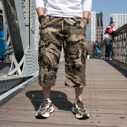 夏季男士短裤 纯棉大码休闲七分裤 宽松多口袋迷彩裤子卡扣工装裤