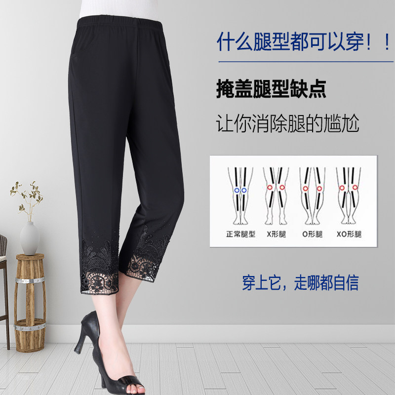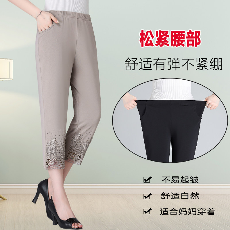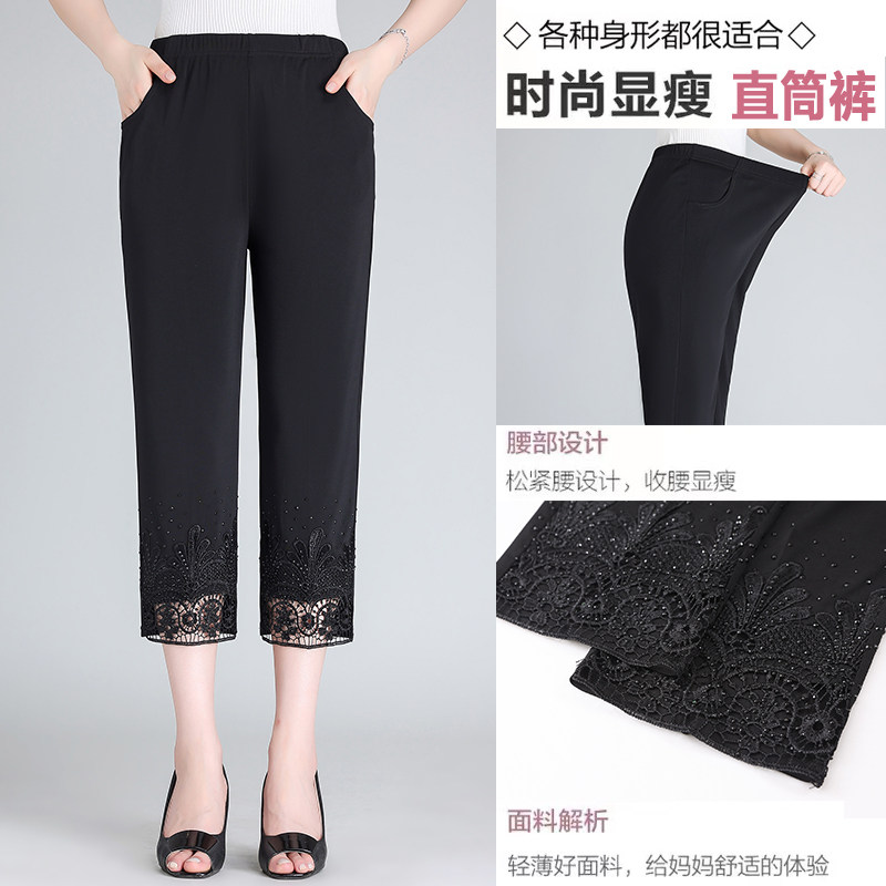 妈妈裤子夏季薄款七分裤中老年人女高腰冰丝夏天直筒老年人直筒裤