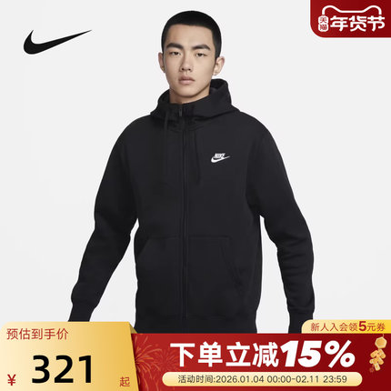 Nike耐克男子连帽衫秋冬新款针织卫衣加绒保暖运动夹克BV2646-010