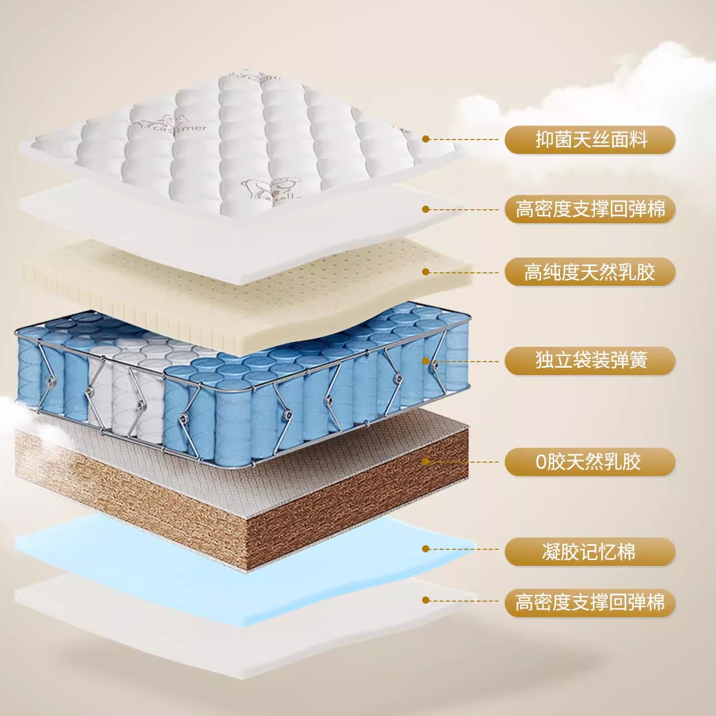 喜临门床垫家用卧室乳胶软垫20cm厚硬椰棕1.5米租房专用弹簧床垫
