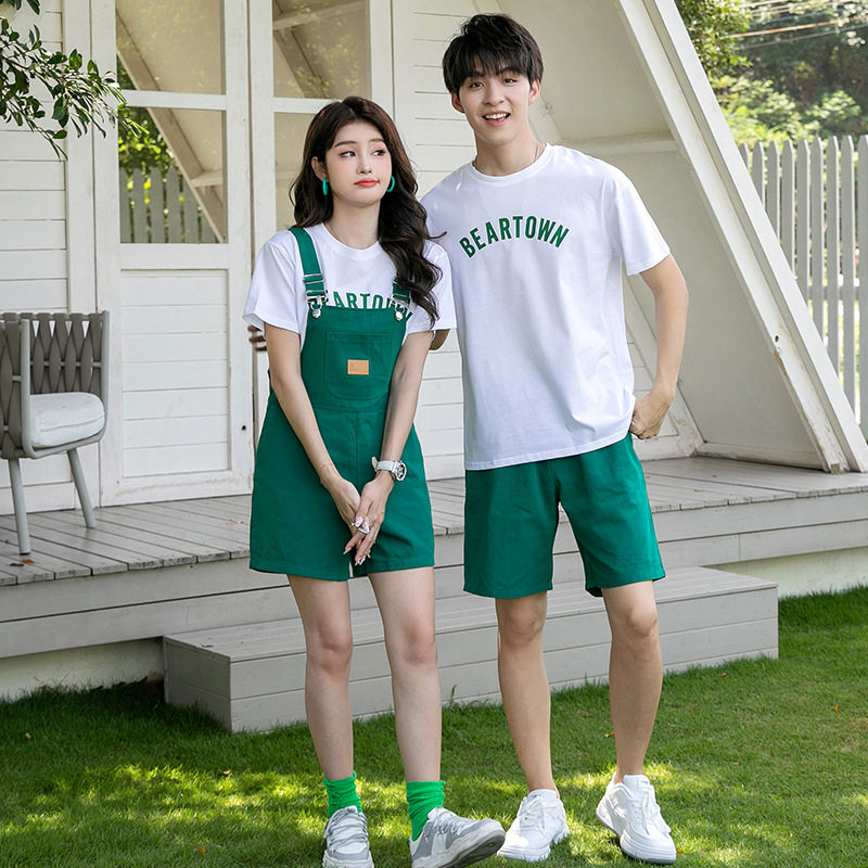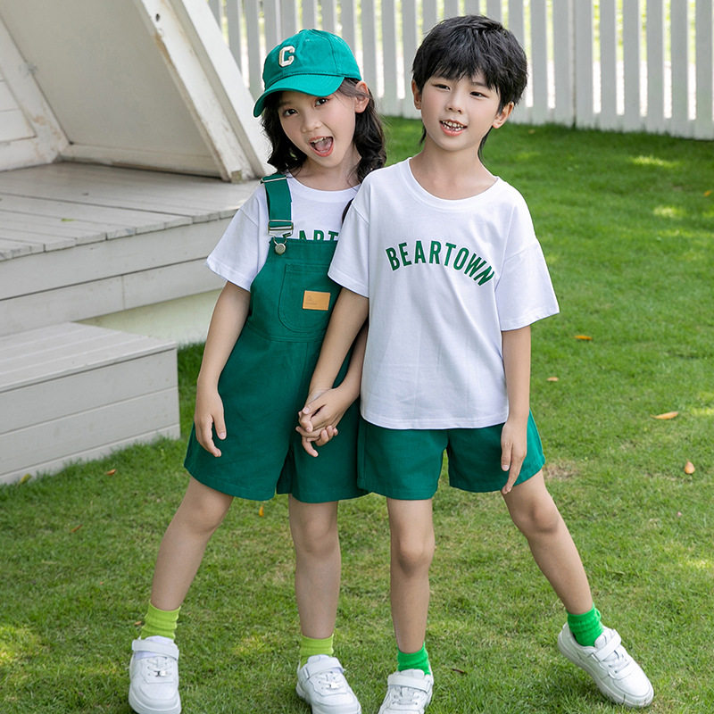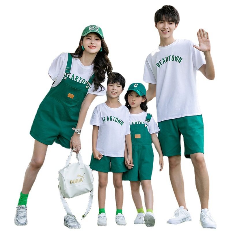 亲子装夏季圆领短袖T恤母女背带裤一家三口幼儿园儿童毕业照套装