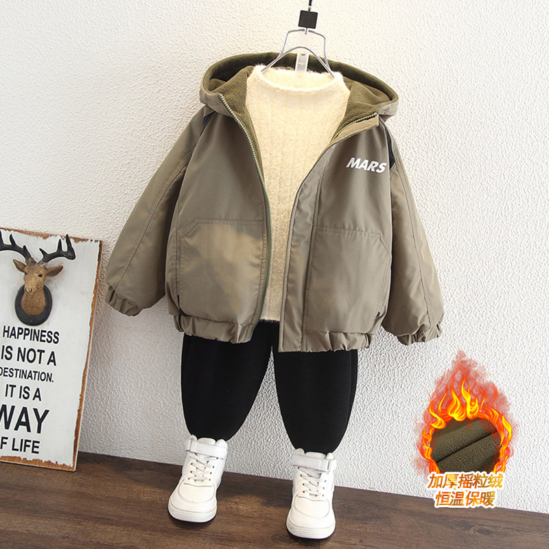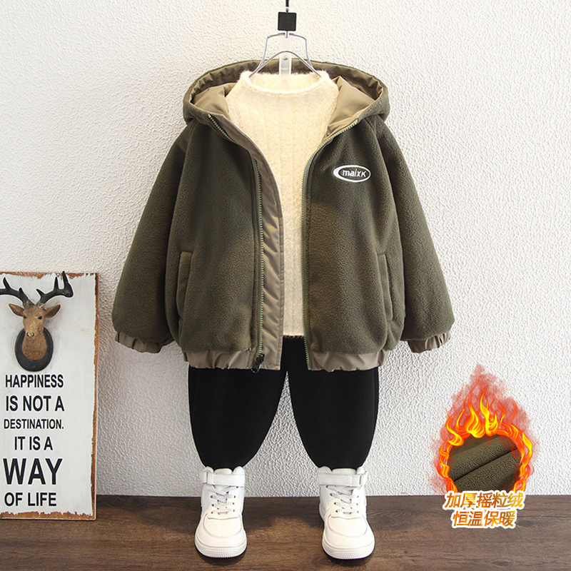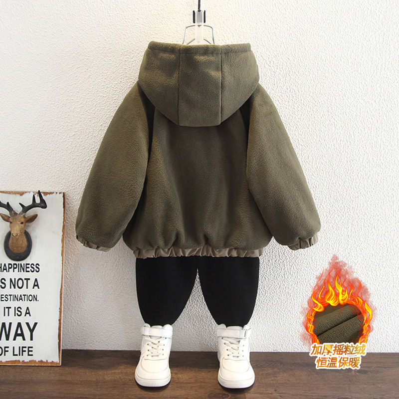 男童冬季加厚摇粒绒双面穿外套中大童加绒连帽保暧夹克冬装冲锋衣