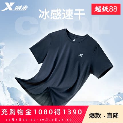 特步短袖T恤男2025夏季新款官方旗舰店跑步透气速干冰丝半袖上衣