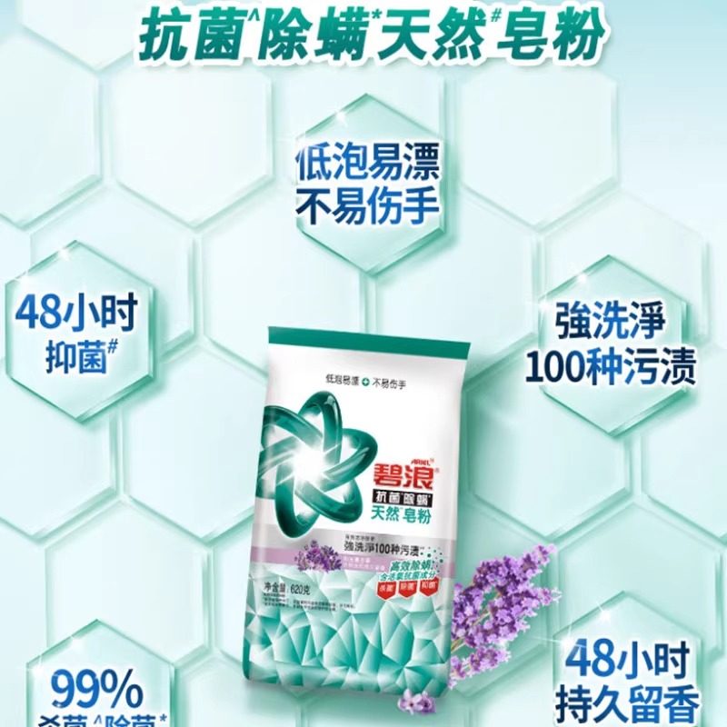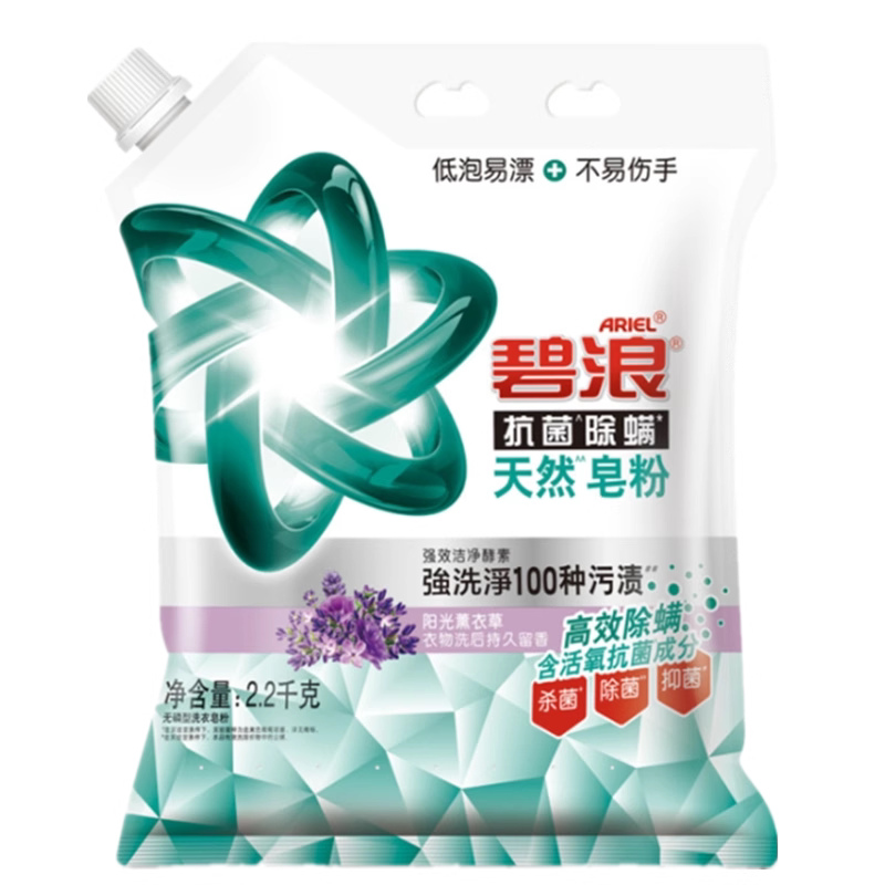 碧浪天然洗衣皂粉抗菌除螨去渍洁净抑菌薰衣草留香低泡易漂正品