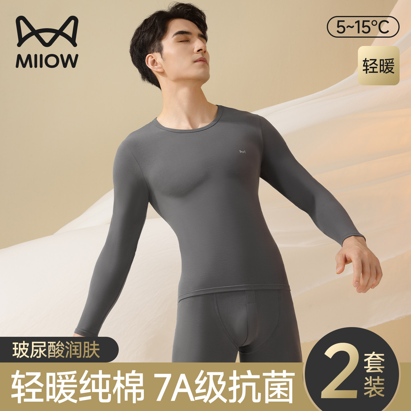 猫人秋衣秋裤男士套装纯棉青少年初高中学生冬季打底保暖内衣男款