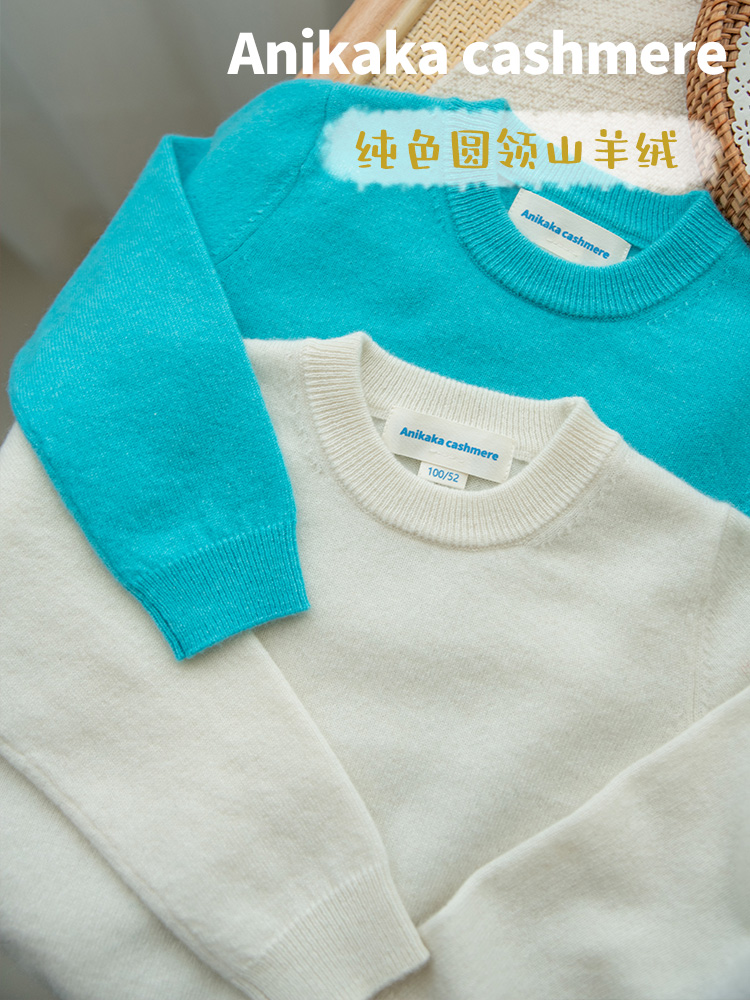 Anikaka秋冬新款亲子百搭纯色长袖纯山羊绒毛衣男女童套头针织衫