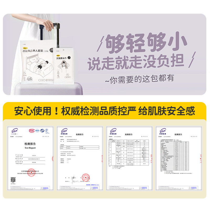 KKV次抛床品双人套装四件套床单被套旅行出差便携卫生一次性用品