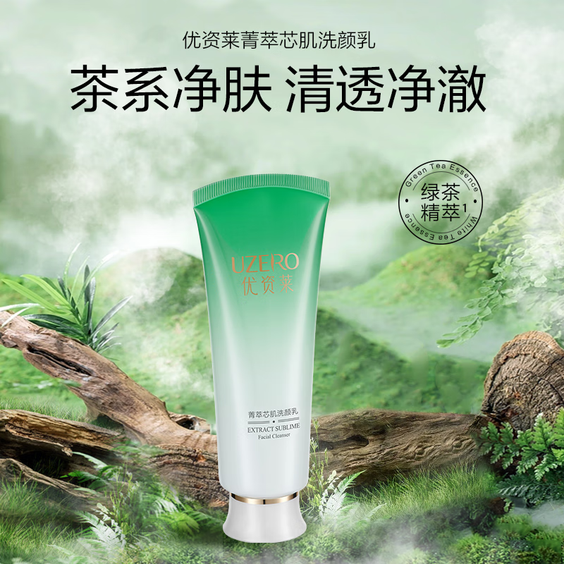 优资莱菁萃芯肌绿茶氨基酸洗面奶洗颜乳清洁学生洁面乳