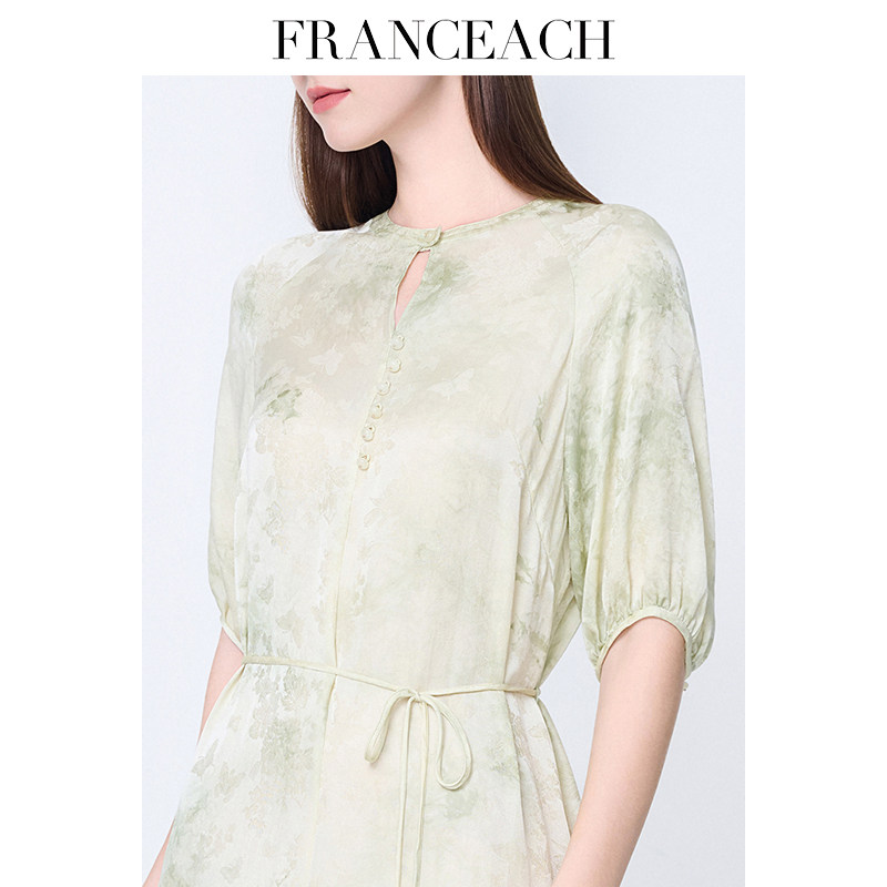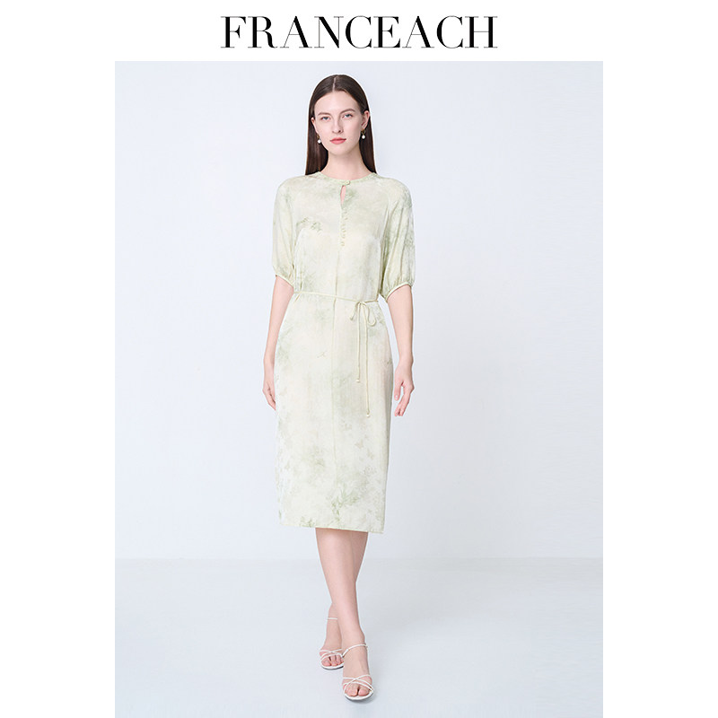 法涵意弛2025春夏新款真丝连衣裙女法式优雅气质印花桑蚕丝中长裙