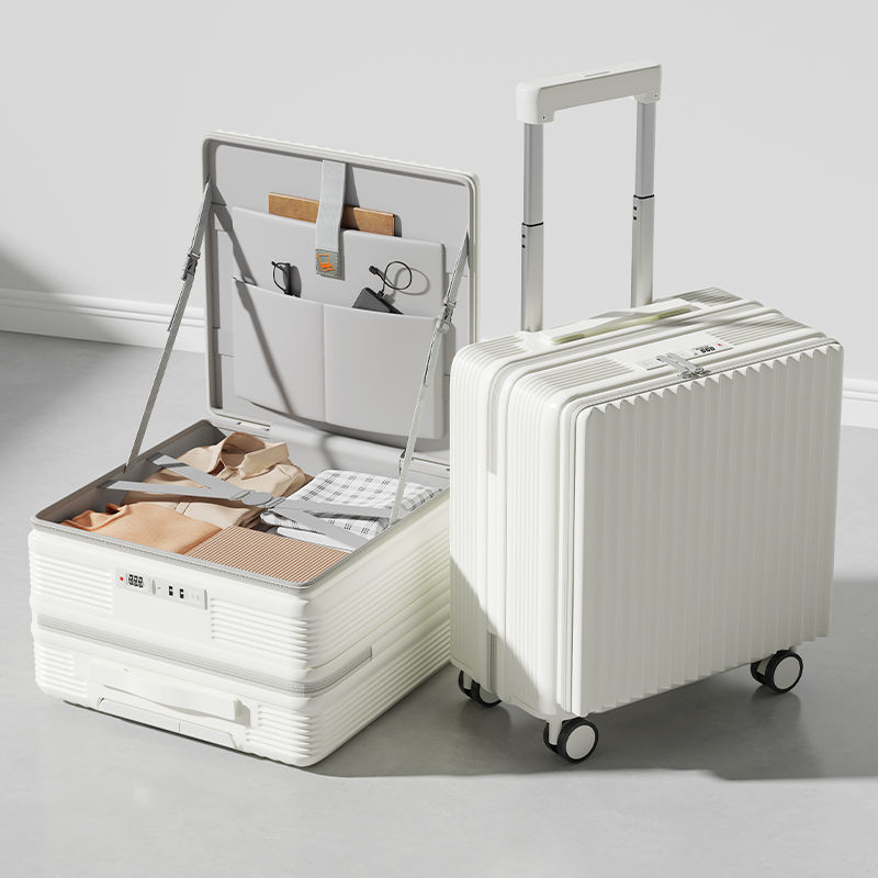 深仓侧开盖行李箱小型轻便可登机18寸旅行多功能拉杆密码皮箱子男