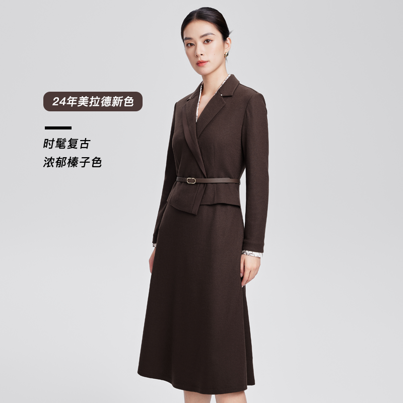 赢智尚早秋高端精致长袖连衣裙女正式场合端庄西装裙假两件裙子