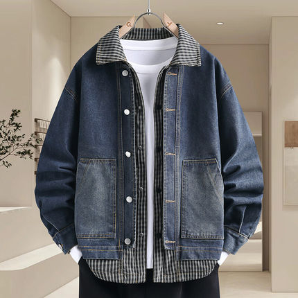 青少年假两件牛仔衣服男外套春秋季韩版潮帅气初高中学生休闲夹克