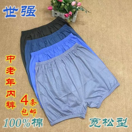 世强男士平脚内裤全棉纯棉宽松型中腰四角平角中老年穿透气性好