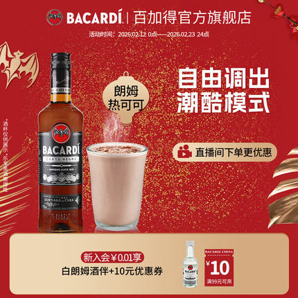 【官方正品】百加得Bacardi黑朗姆酒烘焙rum750ml洋酒基酒调酒