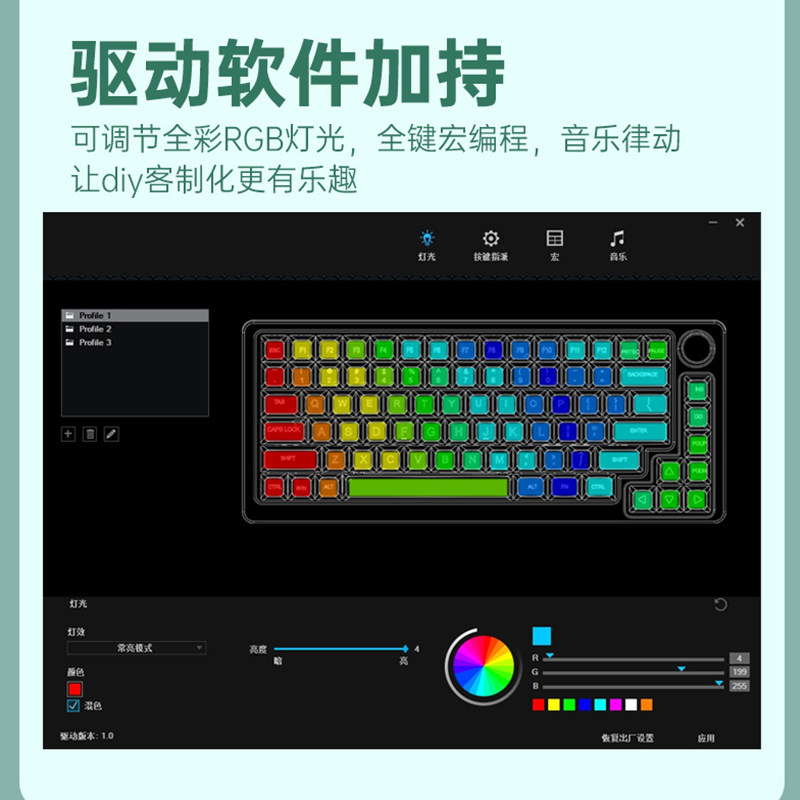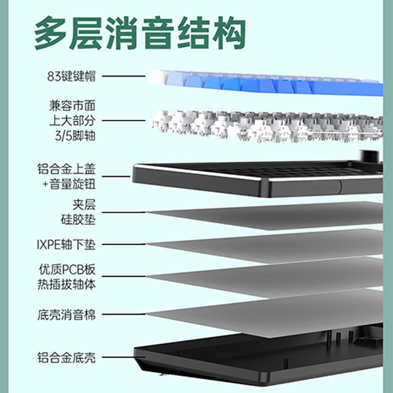 铝坨坨雾蓝极昼小机械键盘RGB灯