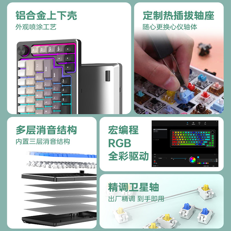 75铝坨坨机械键盘有线客制化套件电竞游戏专用女生办公全铝金属